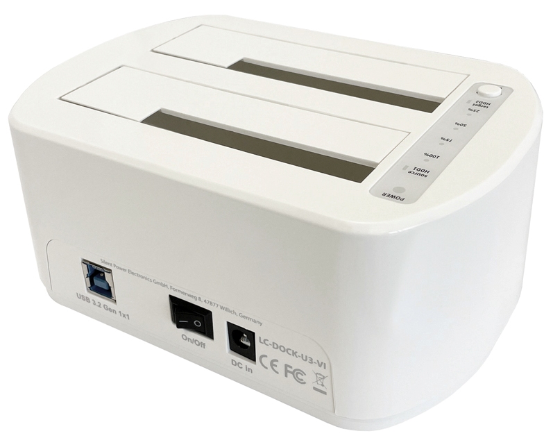 2,5" / 3,5" HDD+SSD LC-Power USB3.2 Dual Bay Dockingstation mit Klon-Funktion